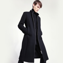 Facecity男士羊毛呢大衣长款过膝修身毛呢风衣加厚双面呢大衣外套