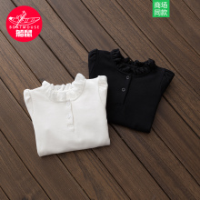 船鼠女童白色打底衫春秋韩版木耳边领儿童上衣t恤宝宝打底衫 公主