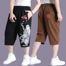 夏季男士嘻哈加肥加大码纯棉薄款七分裤潮流短裤特大号肥佬裤中裤