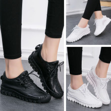2017春夏新品平底女鞋子 大码透气网纱单鞋平跟乐福鞋小白鞋 真皮