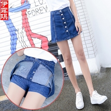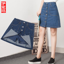 2017夏季新款韩版半身裙牛仔裙女包臀高腰a字裙百褶裙防走光裤裙