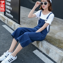 牛仔背带裤女春夏季2017新款韩版七分吊带裤女宽松休闲阔腿连体裤