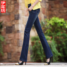 春季新款中腰韩版修身显瘦微喇牛仔裤女 深色大码女装喇叭裤长裤