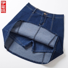 夏季新薄款防走光高腰牛仔短裙子a字裙包臀裤裙伞裙半身裙大摆裙