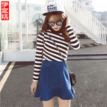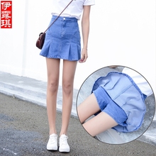 2017春夏新款韩国时尚高腰荷叶牛仔短裙女显瘦包臀鱼尾A字半身裙
