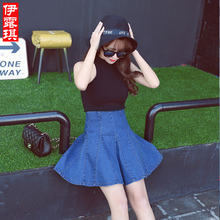 2017夏季新款韩国牛仔裙半身裙百褶裙短裙女高腰蓬蓬裙百褶a字裙