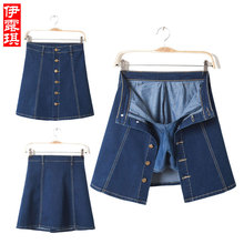2017夏装新款高腰半身裙a字牛仔裙防走光裙短裙包臀排扣牛仔裤裙
