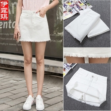 新款牛仔裙a字短裙女夏白色半身裙子韩版学生时尚流苏防走光裤裙