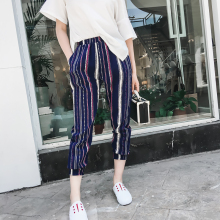 NUMBERCICI 2017夏季新款韩版蓝色条纹收口松紧腰哈伦裤七分裤女