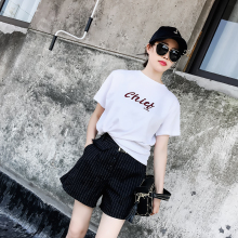 NUMBERCICI 2017夏装新款纯棉上衣 韩版字母纯色短袖T恤女