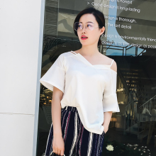 NUMBERCICI 韩版喇叭袖17夏季新款短袖上衣 露肩V领开叉纯色T恤女