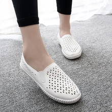 2017夏季镂空帆布鞋女鞋平底一脚蹬懒人鞋透气乐福鞋皮面休闲女鞋
