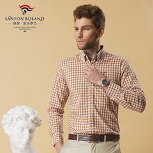 保罗圣夫罗兰 男士长袖衬衫纯棉格子修身潮新款情侣衬衫初春男装