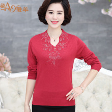 爱羊40-50妈妈装秋装针织衫长袖毛衣中老年女装大码打底衫上衣