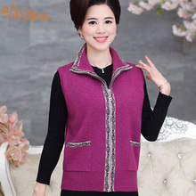中老年人女装秋装针织衫马甲宽松无袖老年女妈妈装毛衣背心开衫厚