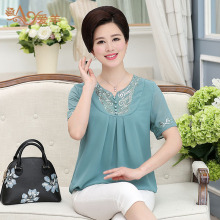 爱羊中老年女装夏装短袖t恤大码中年妈妈装宽松雪纺衫上衣 双层