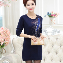 中老年人女装针织衫中长款中年女妈妈装毛衣连衣裙宽松长袖打底衫