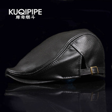 单层羊皮平顶帽男韩版潮青年 真皮帽子男 中老年春秋冬季鸭舌军帽