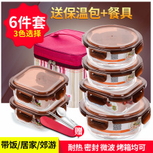 夸克六件套高硼硅耐热玻璃饭盒装微波炉专用保鲜盒收纳带盖玻璃碗