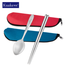 拉链式帆布袋便携餐具不锈钢套装旅行餐具两件套旅游便携水洗布袋