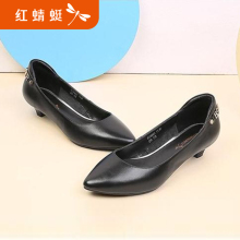 红蜻蜓女鞋浅口单鞋新款春夏季真皮低跟尖头百搭休闲鞋工作鞋舒适