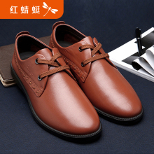 红蜻蜓男鞋真皮正品男士休闲鞋商务皮鞋系带英伦秋款透气正装鞋子