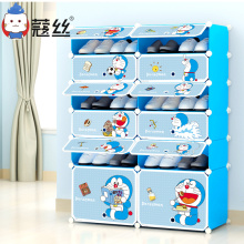 蔻丝 哆啦A梦卡通儿童鞋柜简易鞋架多层组装防尘塑料组合