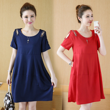 2017春夏装韩版大码女装胖妹妹加肥加大胖MM钉珠宽松显瘦女连衣裙