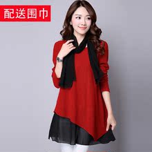 2017大码女装春装胖妹妹中长款宽松衬衫长袖T恤胖MM打底衫衣服潮