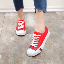 透气帆布鞋女低帮韩版学生板鞋大红色休闲鞋潮白色厚底松糕鞋春秋
