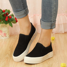 春夏新款不系带懒人帆布鞋加厚底舒适内增高松糕鞋女乐福鞋休闲鞋