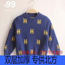 2016秋冬新款 儿童羊绒衫男童圆领套头羊毛衫韩版卡通针织毛衣