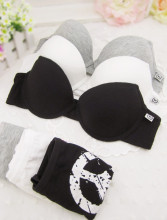 包邮 夏季纯色日系少女文胸套装 全纯棉白色内衣 薄款光面糖果色