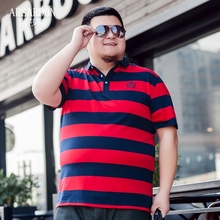 夏季短袖t恤男士加肥加大码条纹T恤肥佬胖子特大号丝光棉翻领体恤