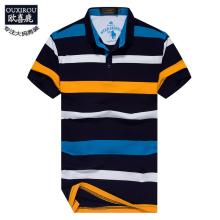 欧喜鹿加大码男装夏季新款丝光棉条纹短袖T恤衫加肥胖子宽松polo