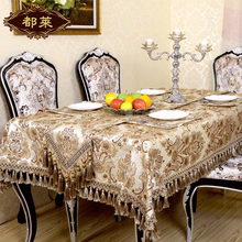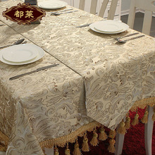 都莱布艺 欧式金丝提花金边绒球吊穗台布茶几巾盖布餐桌布