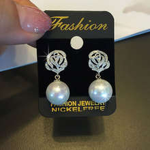 ABR米耳微镶锆石钻气质山茶花珍珠 耳钉耳环耳饰 韩国饰品