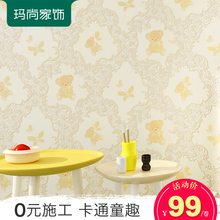玛尚壁纸 温馨可爱环保卡通蝴蝶小熊儿童房男女孩卧室背景壁纸