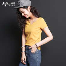 七格格2017夏季韩范简约V领修身显瘦打底T恤女短袖学生露锁骨上衣