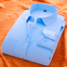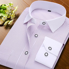 青年男士修身款衬衫纯色条纹商务休闲工作服大码春季中年长袖衬衣