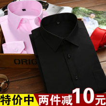 白衬衫男长袖加肥加大黑色青年商务休闲大码韩版修身中年粉色衬衣