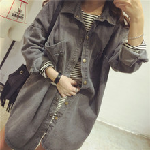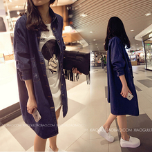 2015春秋新款韩版百搭中长款牛仔衬衫宽松BF风长袖牛仔薄外套女潮