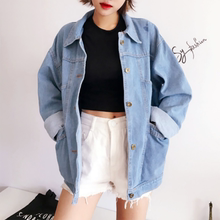 秋季新款牛仔外套女原宿风BF宽松中长款牛仔衣外套韩版潮长袖大码