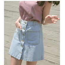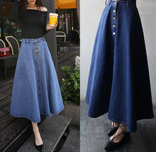 春秋韩版大码中长款单排扣显瘦牛仔高腰半身裙大摆裙A字裙伞裙女