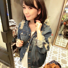 春季新款韩版破洞牛仔外套女长袖宽松显瘦BF风上衣学生牛仔衣女潮
