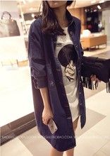 2016秋冬女装韩版显瘦长袖外衣学生潮中长款牛仔风衣宽松褂子外套