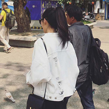 2017春季新款女装BF风破洞宽松情侣装百搭牛仔衣外套女上衣夹克潮
