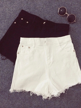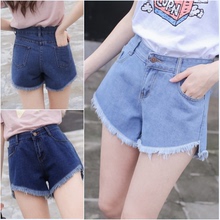 2017新款韩版a字流苏热裤 白色高腰牛仔短裤女 夏宽松阔腿毛边潮