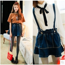 2016春夏新款牛仔背带裙女韩国大码修身半身裙学院风短裙牛仔裙子