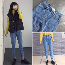 2016春装新款 宽松显瘦小脚直筒裤 韩版高腰水洗牛仔长裤子女学生